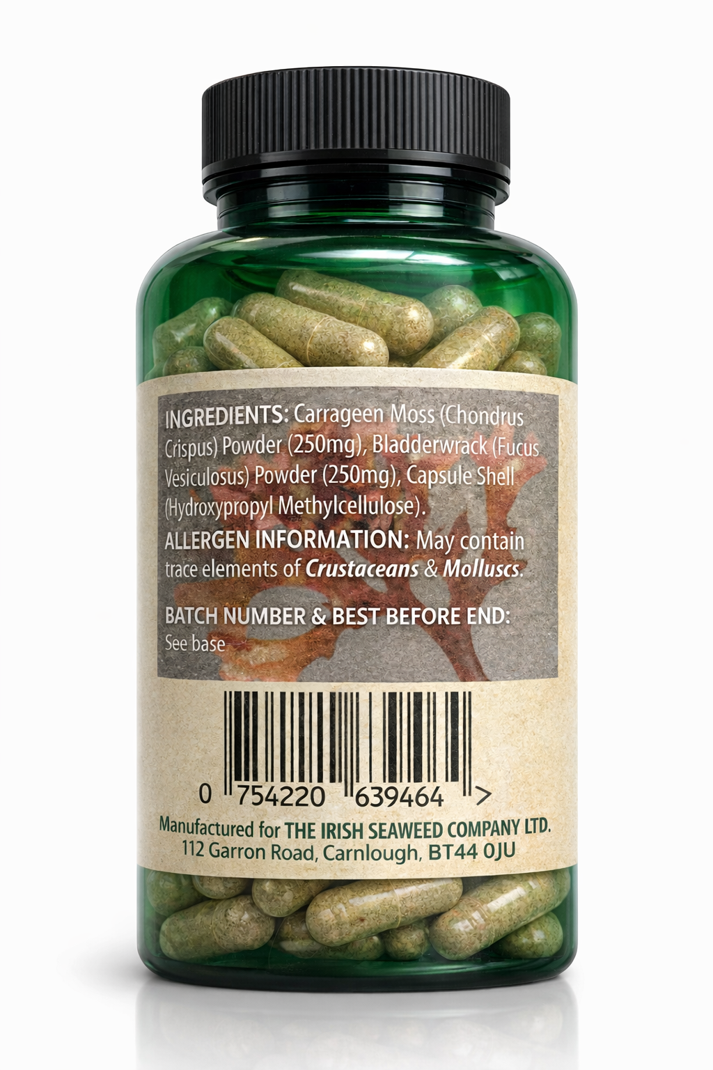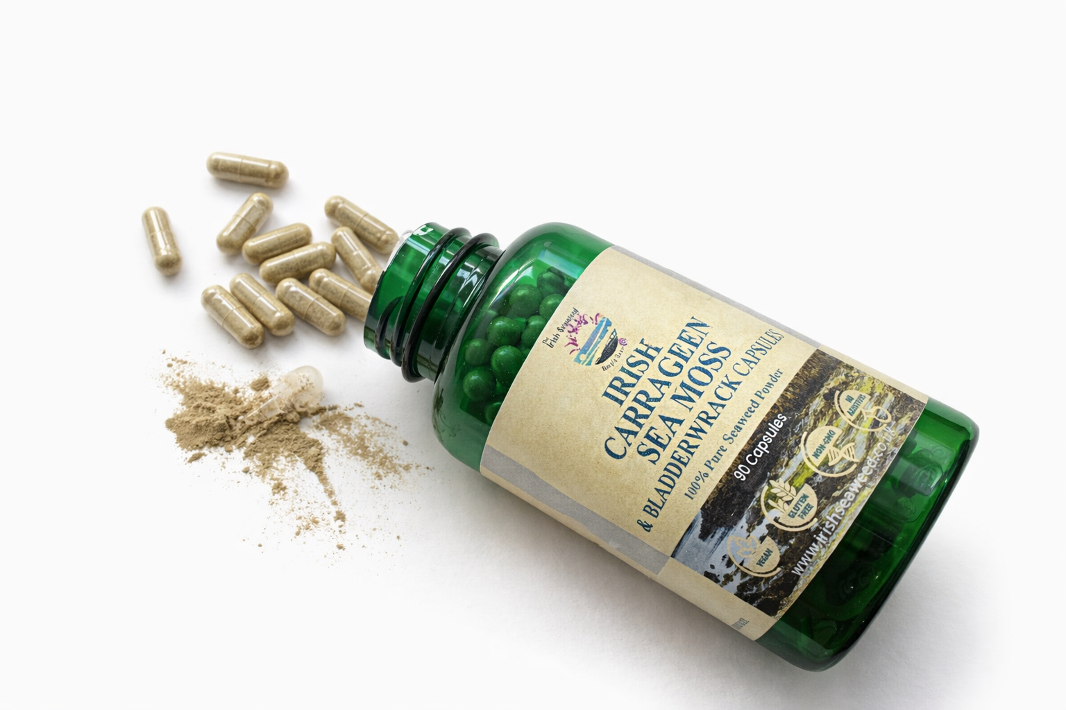 Our Irish Sea Moss (Carrageen) and Bladderwrack capsules are Vegan, Gluten free, Wheat Free and do not contain any artificial colours or flavours a perfect addition to enhance health and well being.
